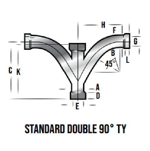 Central Vacuum Fittings DTY DYL DY’s are used in central vacuum piping systems where a various combination of wye’s and tee branches are required. The branches are available in forty five and ninety degrees. In piping terms these Central Vacuum Fittings DTY DYL DY fittings are commonly known as forty five degree and ninety degree combos. Central Vacuum Fittings DTY DYL DY are available in four different materials. The available materials are aluminum, carbon steel, stainless steel and galvanized steel.